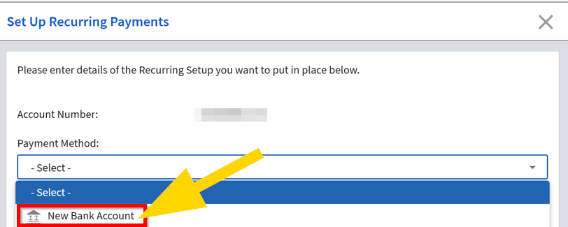 Seleccione el método de pago y agregue una nueva cuenta bancaria .