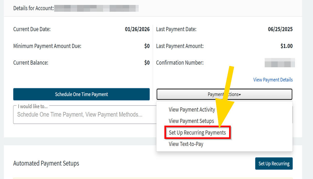 Seleccione Configurar pagos recurrentes en el menú desplegable.